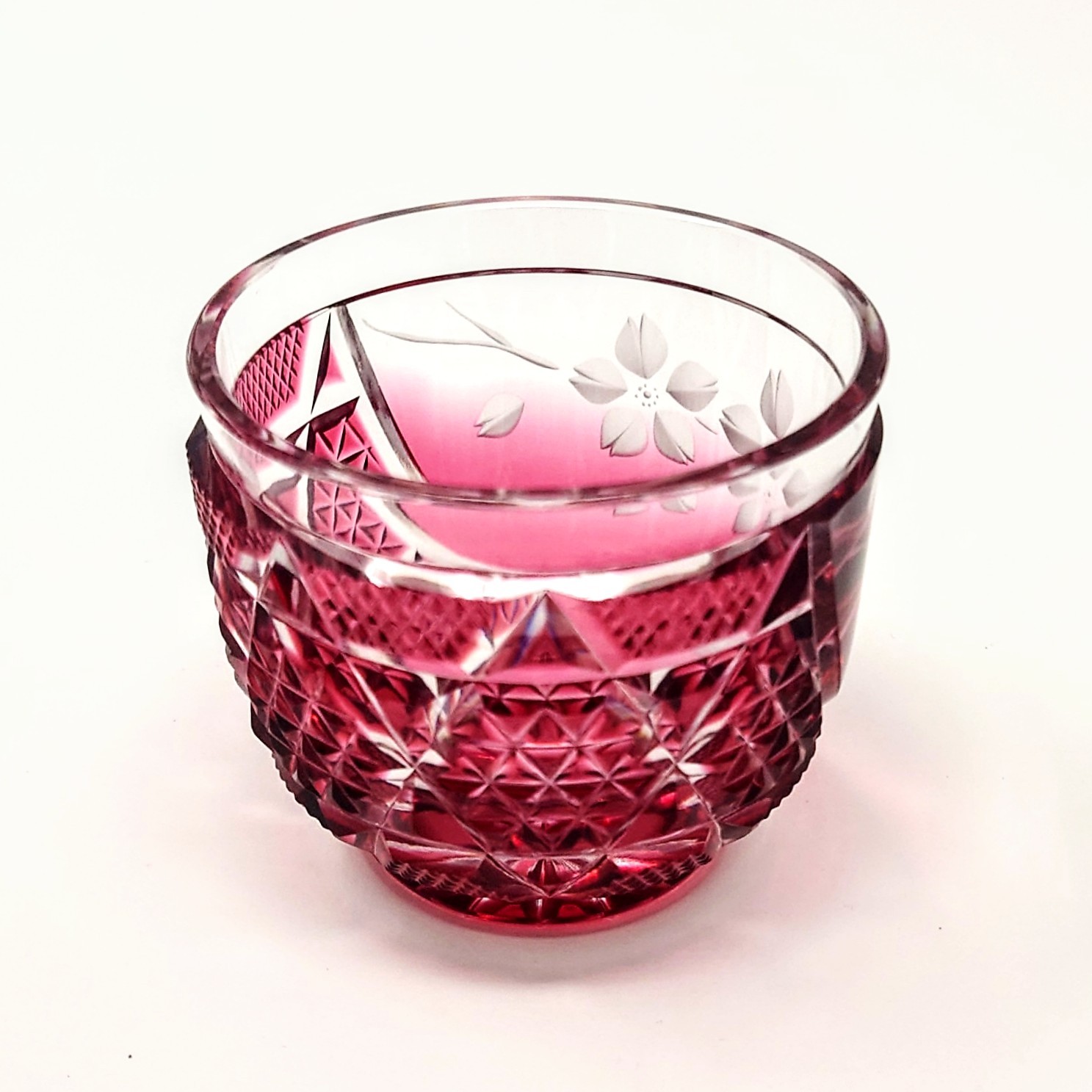 薩摩切子 猪口(おちょこ) 「花やか」︰金赤 頌峰作