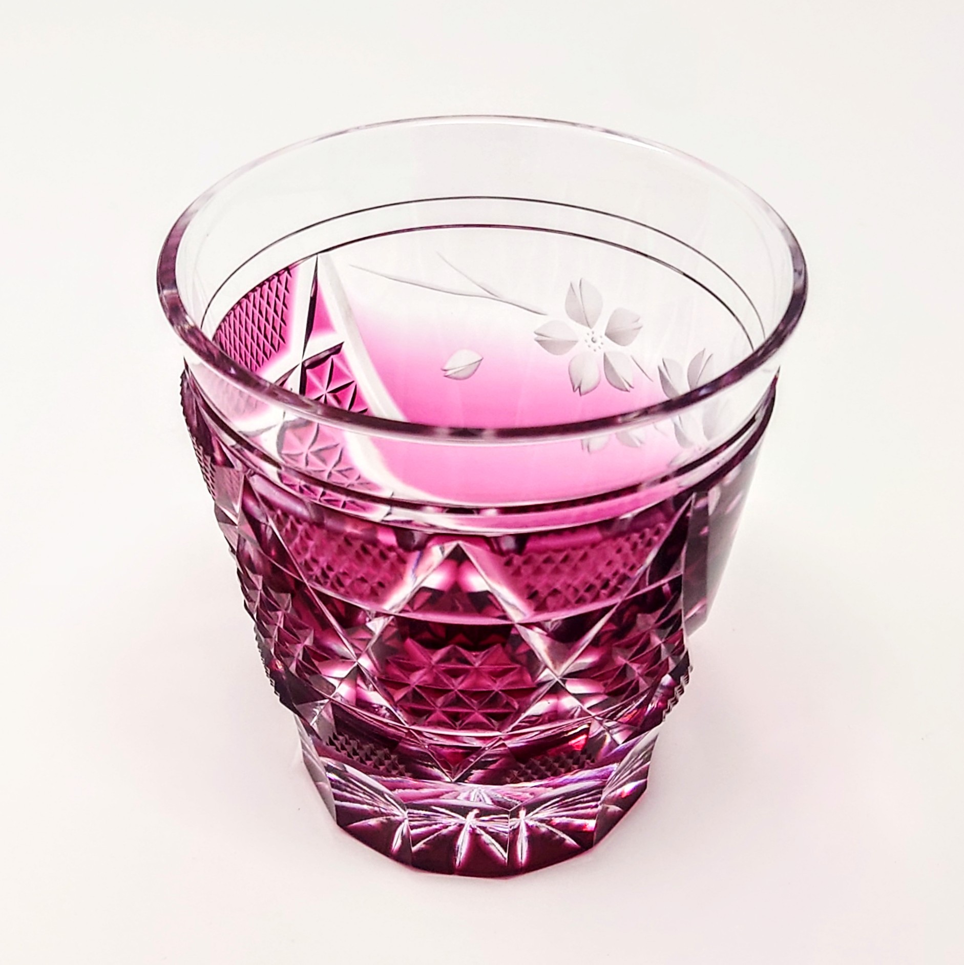薩摩切子 オールドロック (ロックグラス) 「花やか」︰金赤 (展開型) 頌峰作