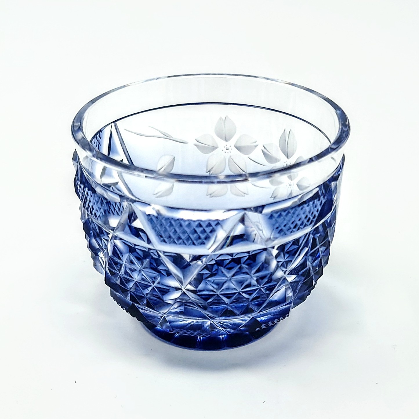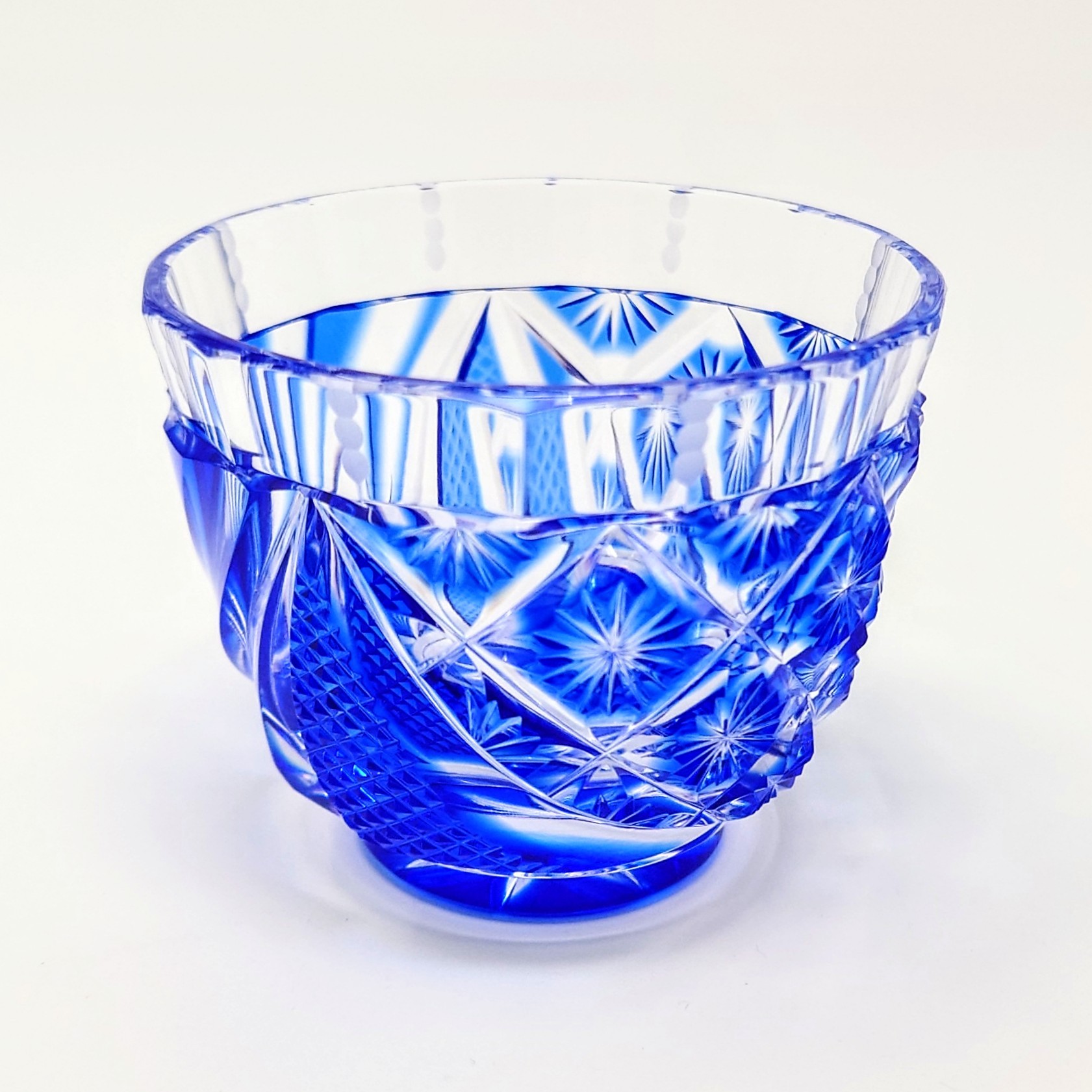 薩摩切子 猪口(おちょこ) 大 「花やか」︰藍 頌峰作