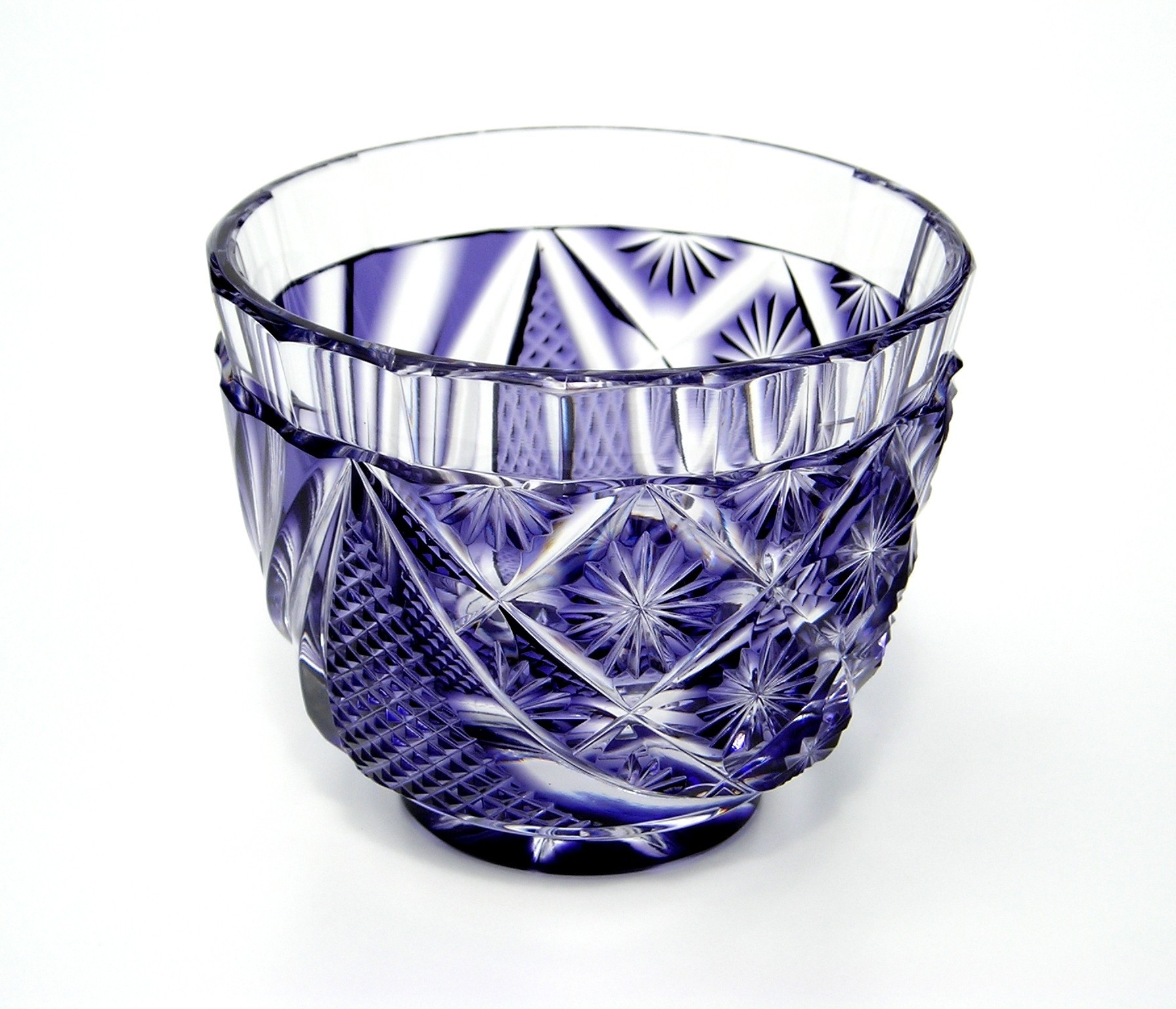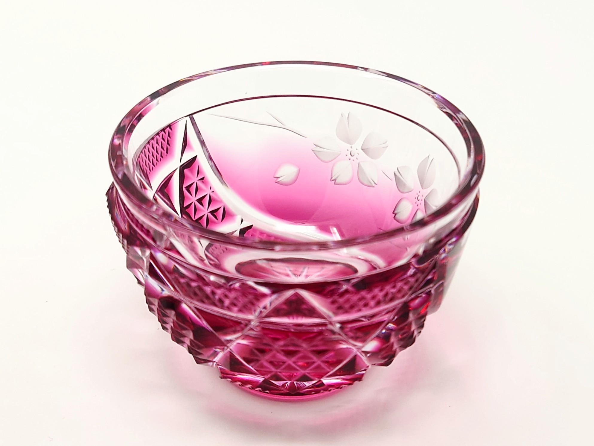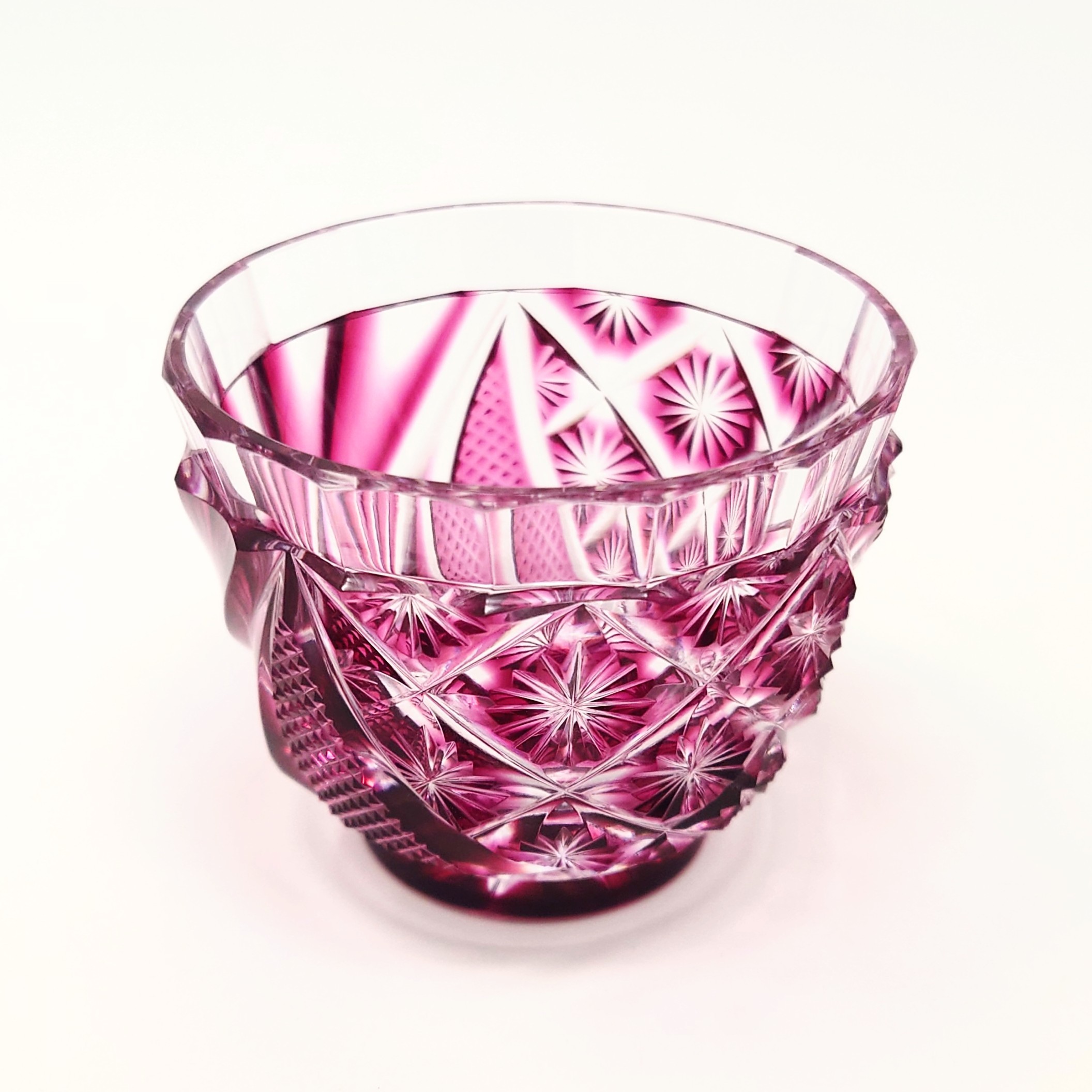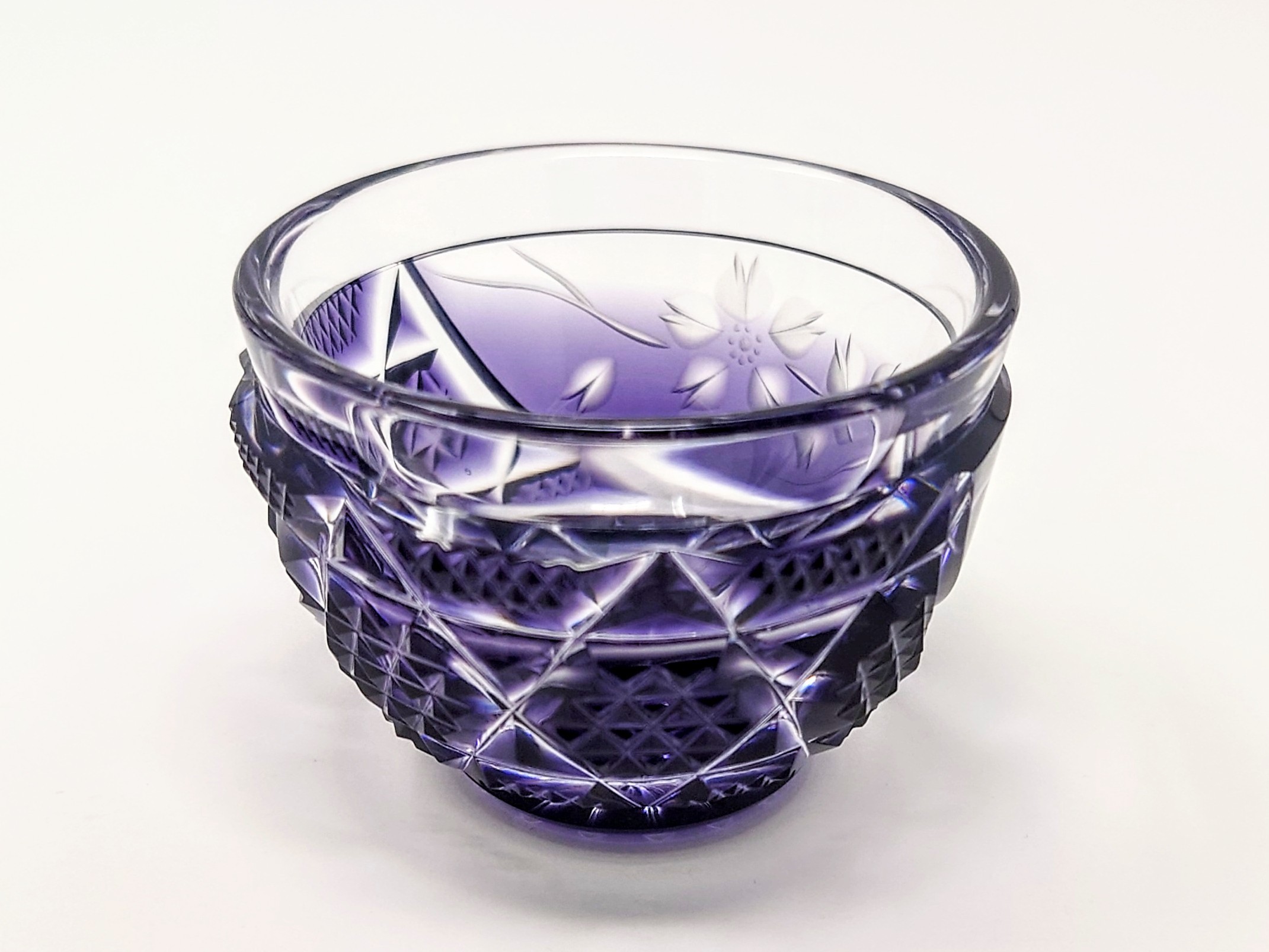 薩摩切子 猪口(おちょこ) 「花やか」︰紫 頌峰作