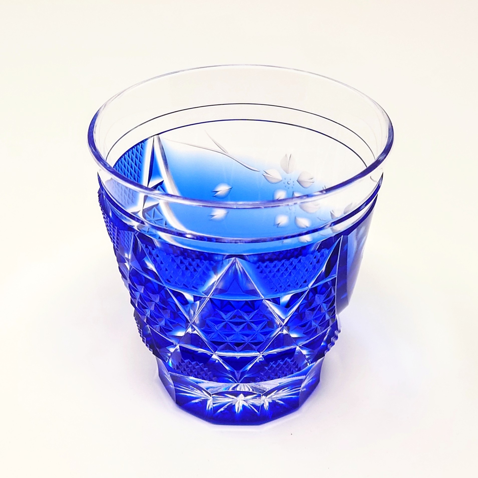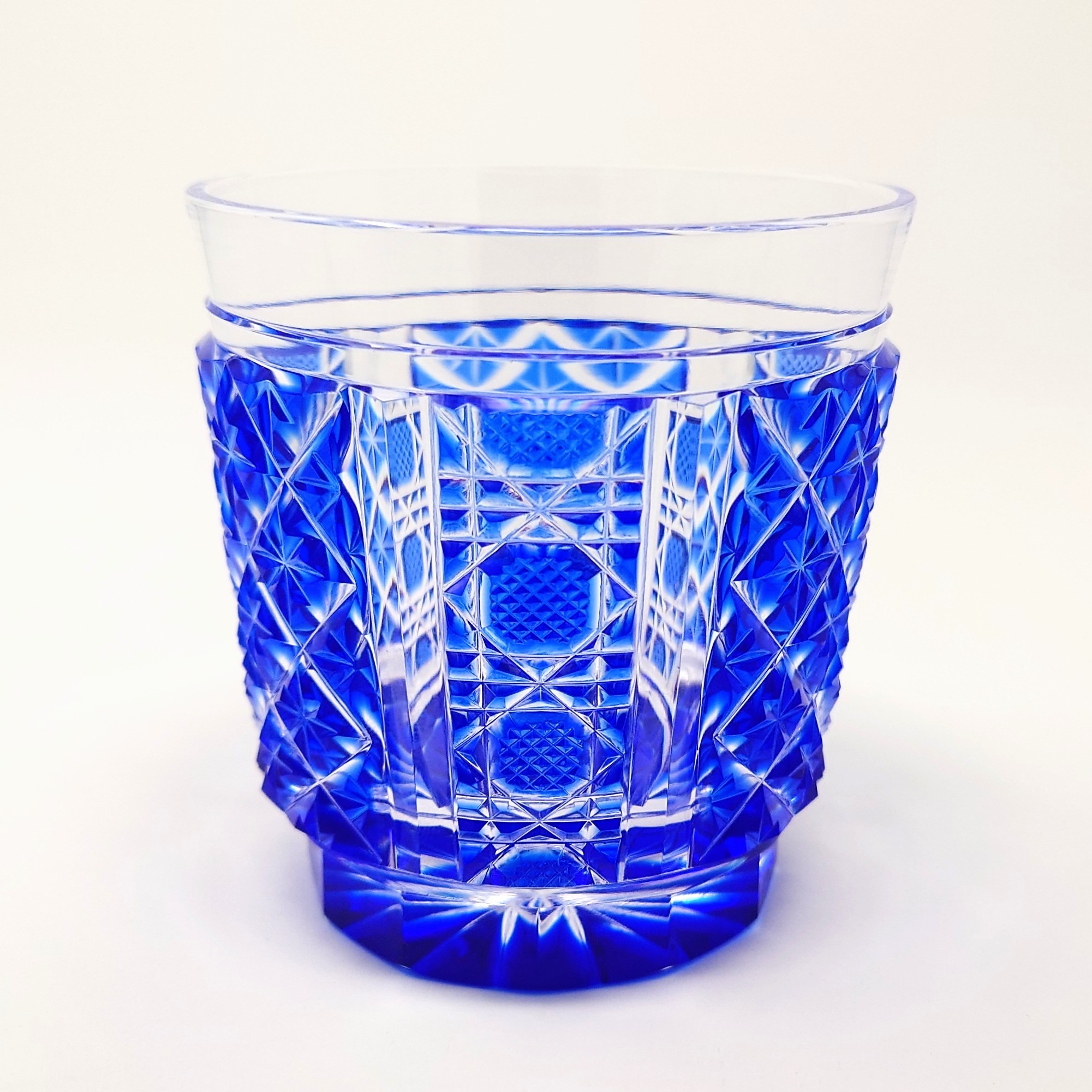 薩摩切子 オールドロック (ロックグラス) 「花やか」︰ルリ 頌峰作