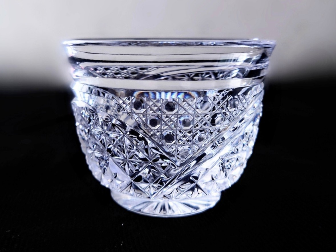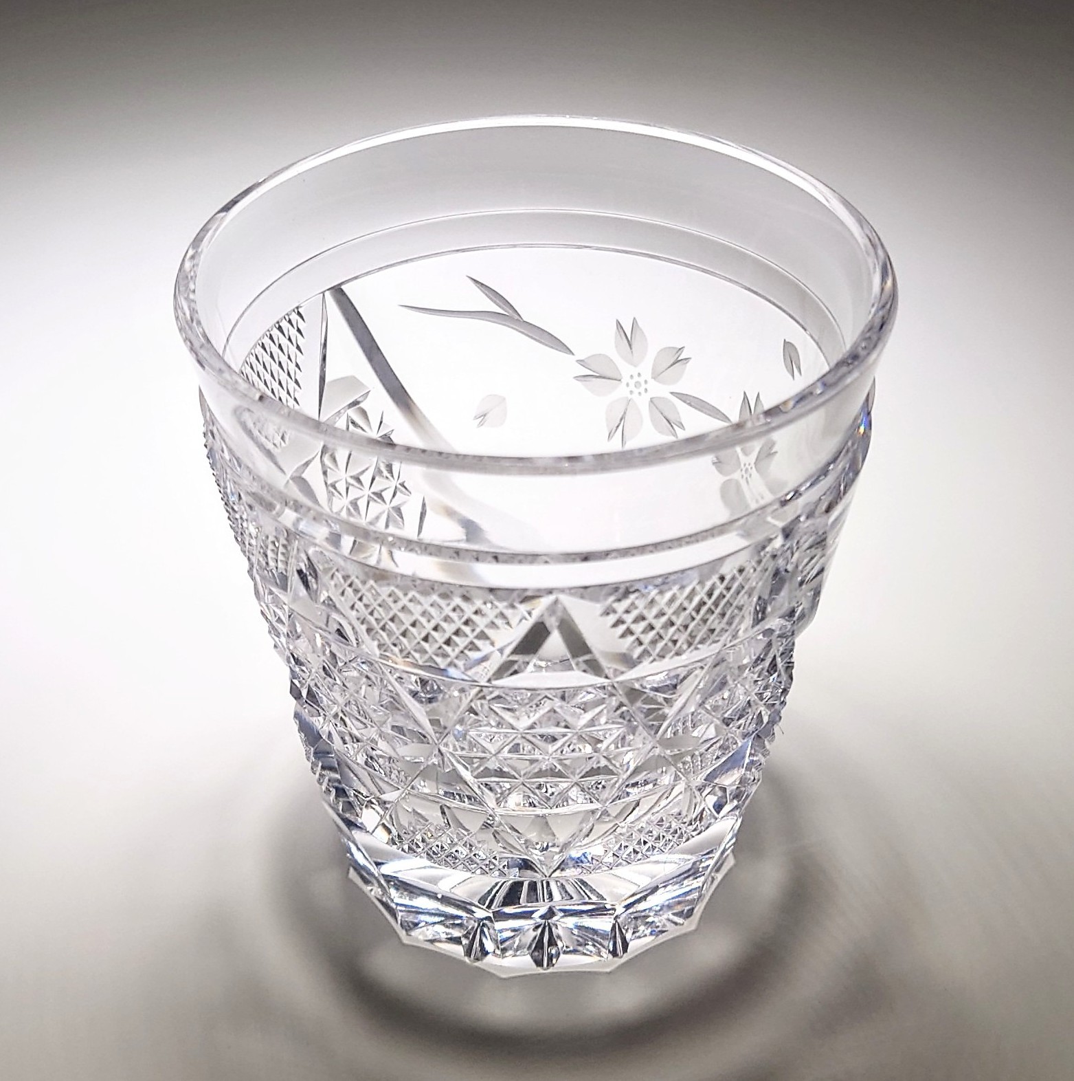 薩摩切子 オールドロック (ロックグラス) 「花やか」︰透明 頌峰作