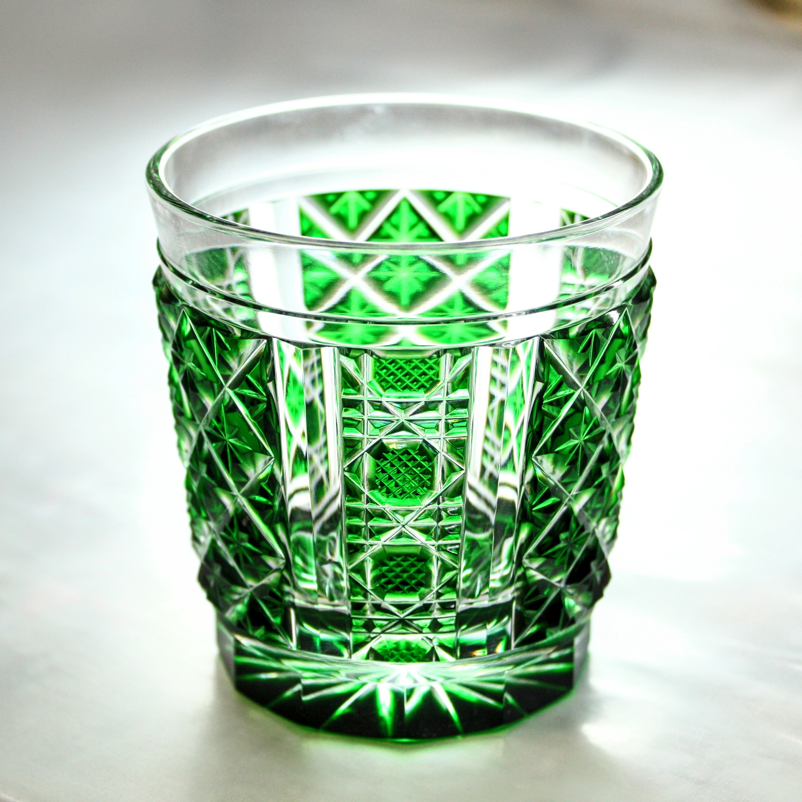 薩摩切子 オールドファッション (ロックグラス) 「星彩」︰緑 頌峰作