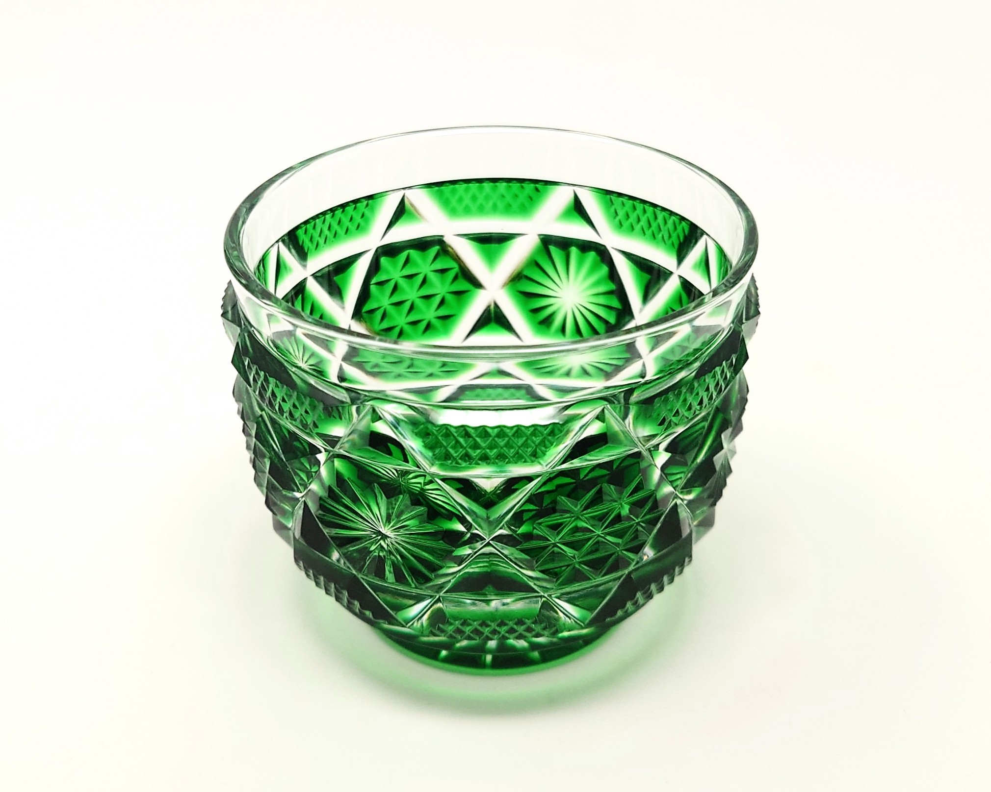 薩摩切子 猪口(おちょこ) 大 「誉れ」︰緑 頌峰作