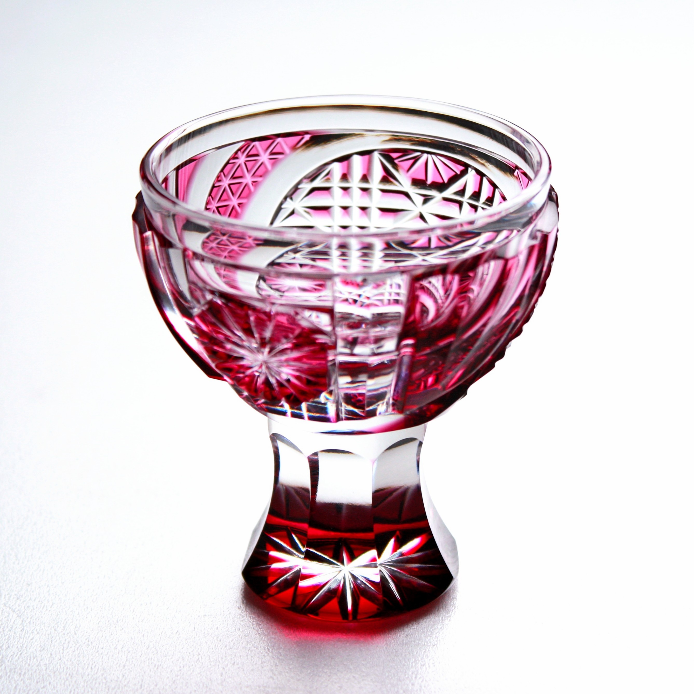 薩摩切子 猪口(おちょこ) 大 「花やか」︰金赤 頌峰作