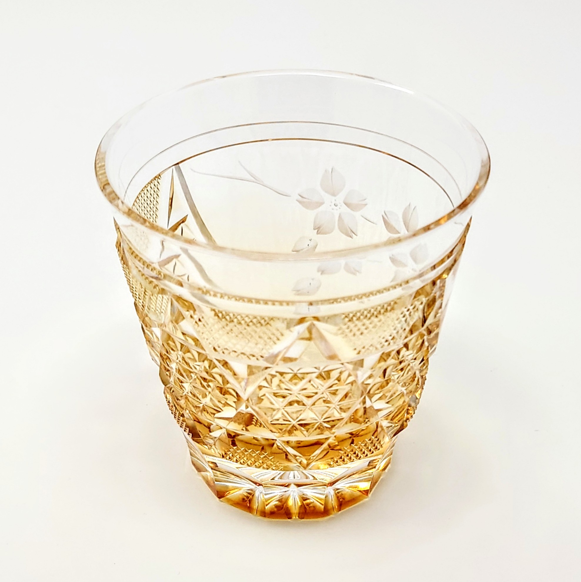 薩摩切子 オールドロック (ロックグラス) 「花やか」︰ゴールド (展開型) 頌峰作