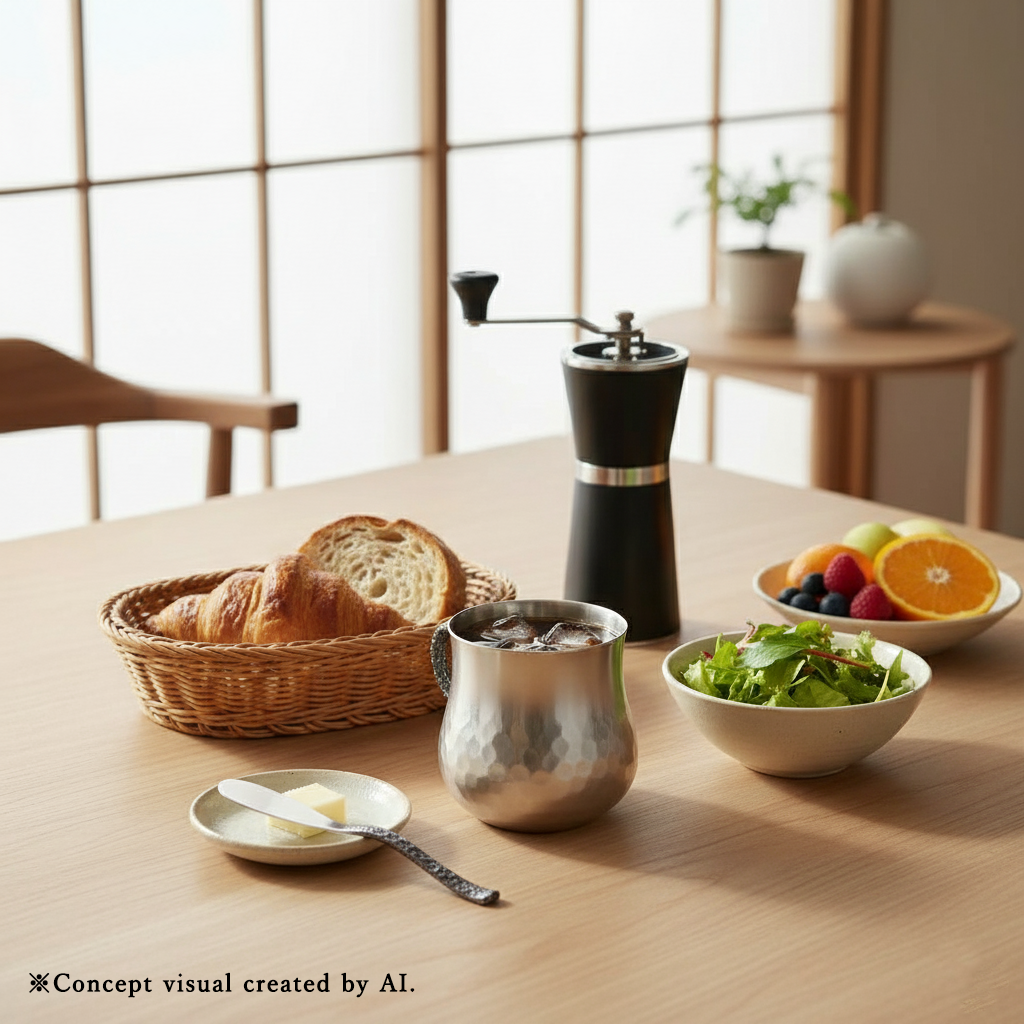 槌目の手仕事が、使うほどに手に馴染む温もりを添えます。