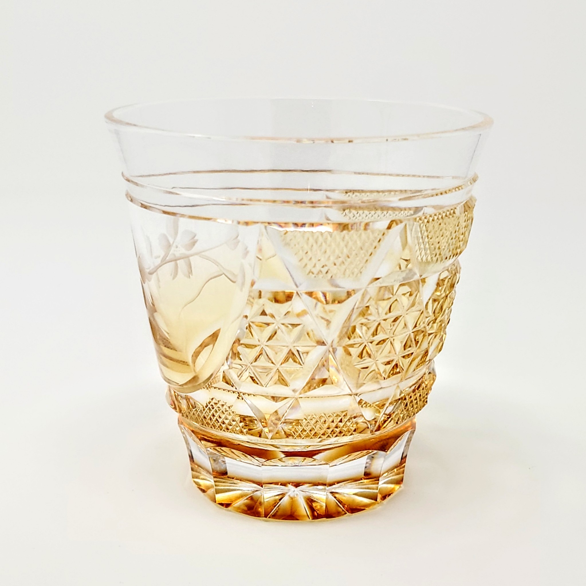 薩摩切子 オールドロック (ロックグラス) 「花やか」︰ゴールド (展開型) 頌峰作