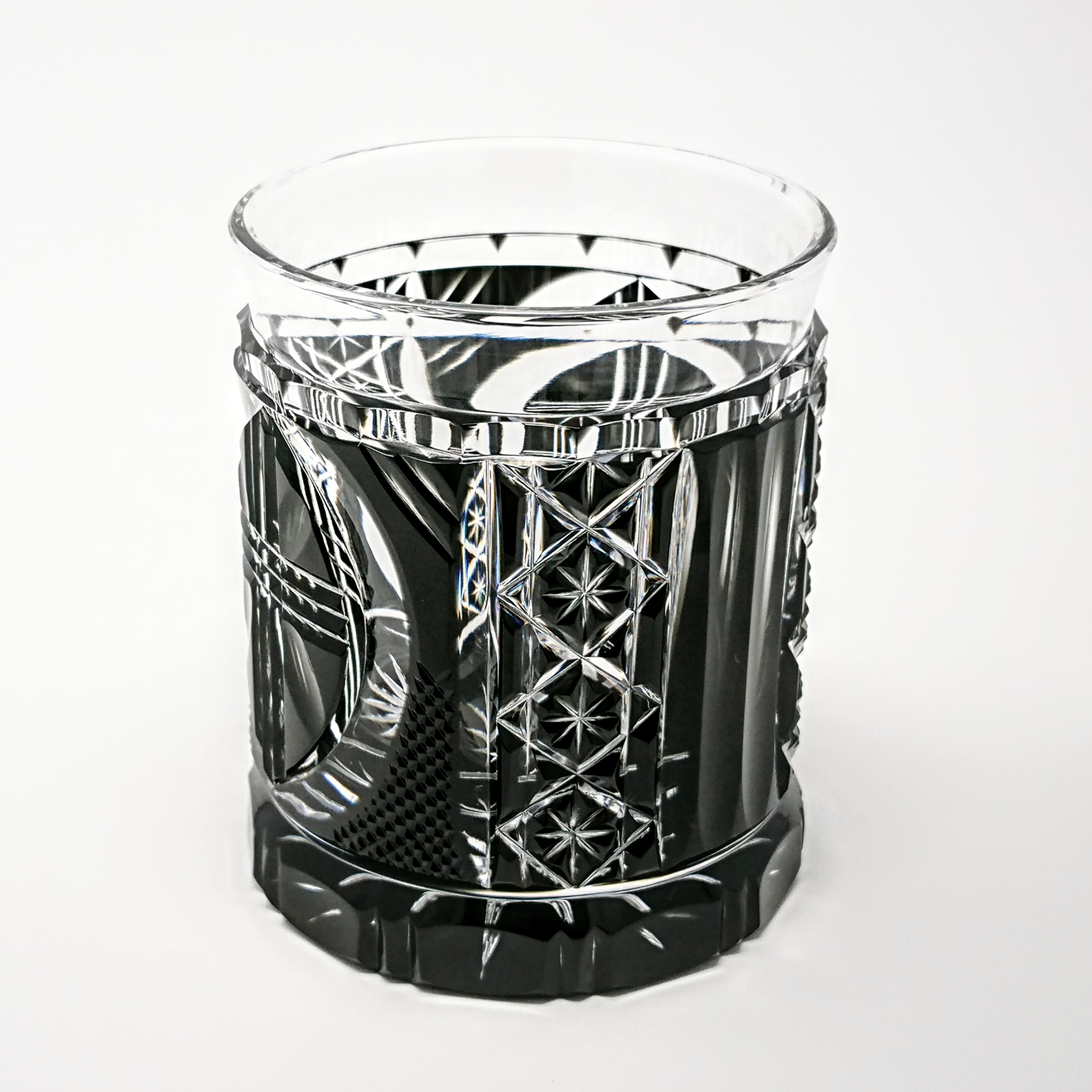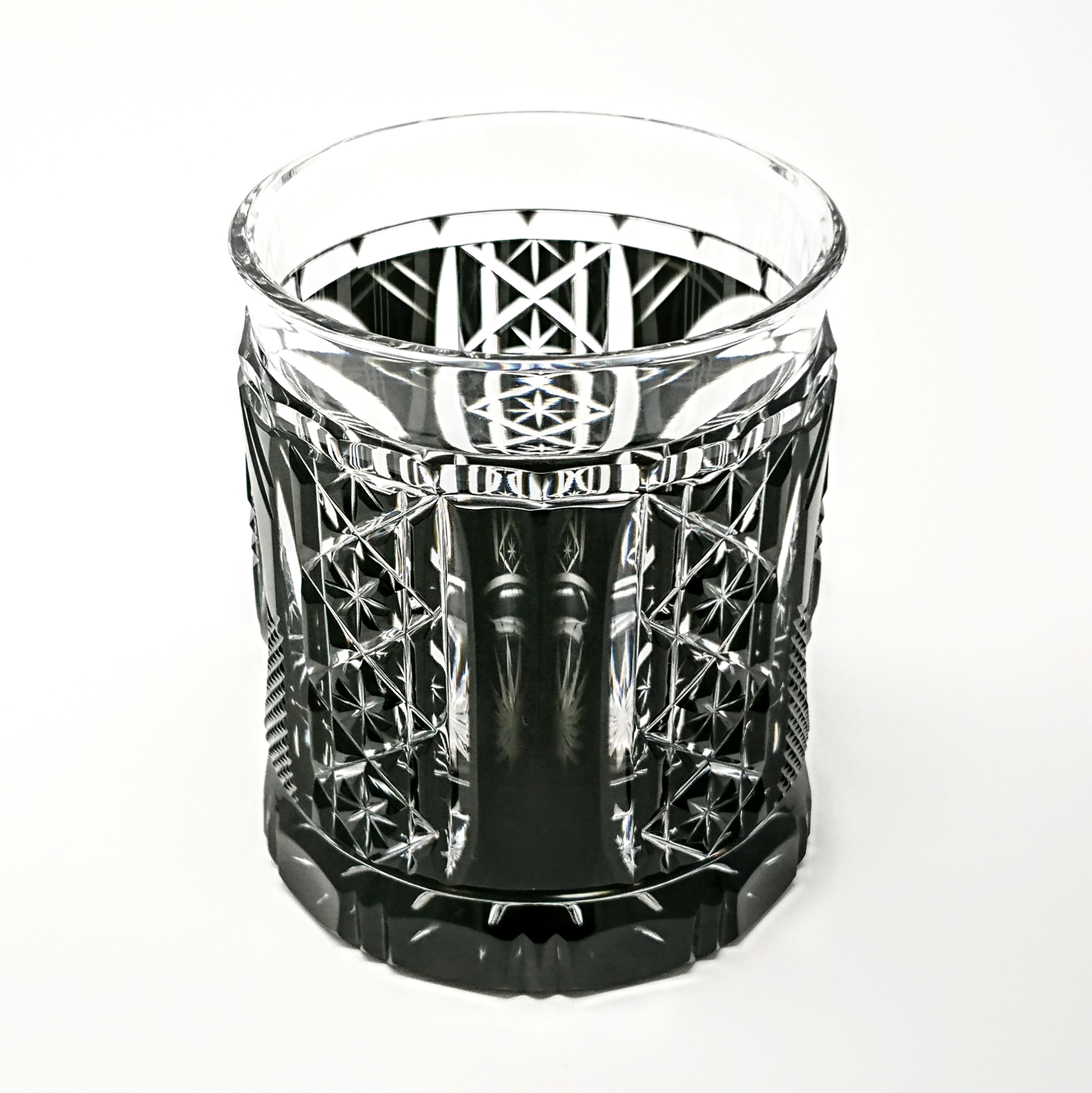 薩摩切子 オールドファッション(ロックグラス)「ゾウの靴」︰黒は、深い黒色が醸し出す落ち着きが印象的な超高級グラスです。