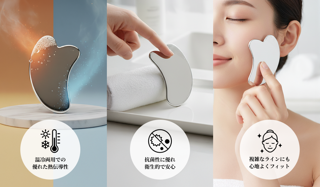 江戸時代から続く東京銀器の伝統を受け継ぐ職人が、世界中の美容とウェルネスを愛する人々から届いた「効果の持続性と、衛生的で贅沢な使用感が欲しい」という声に応え、純銀の特性と工芸美を融合させた「次世代のかっさ」を追求。
